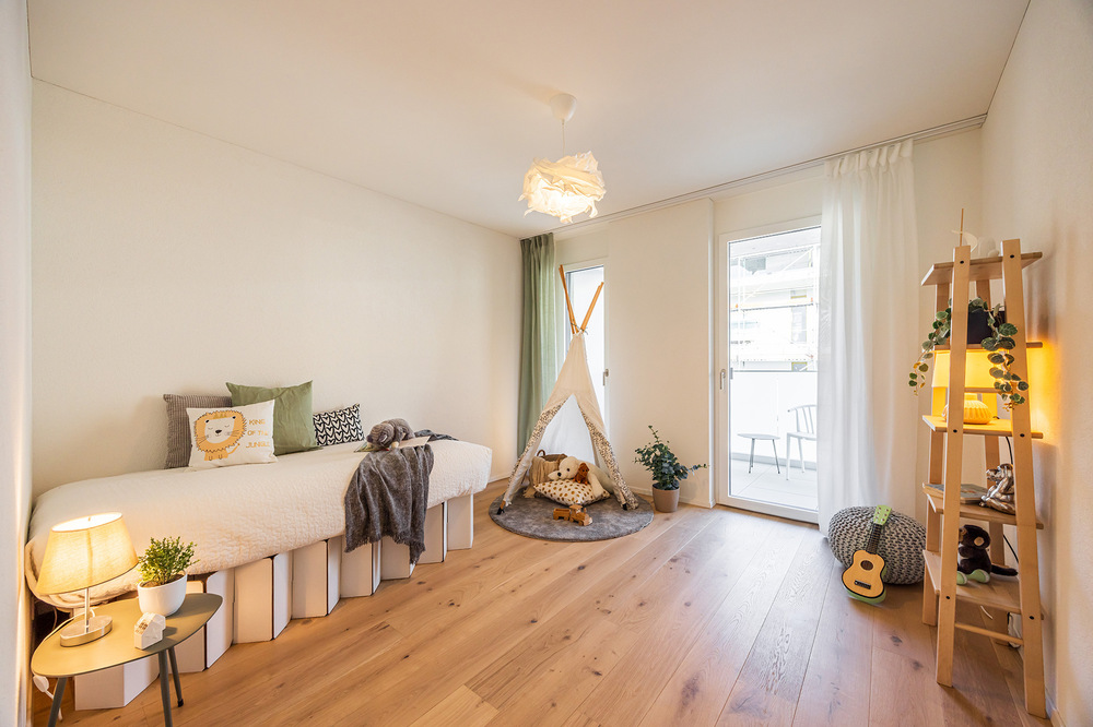 Die Aussen- und Grünflächen laden zum Entspannen ein. Ein liebevoll gestalteter Spielplatz bietet Kindern sicheren Spass, während die Erwachsenen die Ruhe und den grünen Ausblick geniessen können.